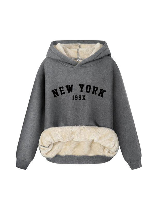Women'S Letter Print Plush Lined Hoodie, Casual Warm Long Sleeve Hooded Sweatshirt, Ladies Fall & Winter Clothes for Daily Wear