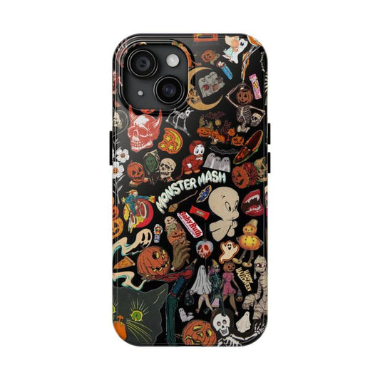 Vintage Halloween Phone Case, Spooky Retro Collage Phone Case for Iphone 16 15 14 13 12 11 Pro Max XS, Ghost & Pumpkin Collage Tough Case, Waterproof, Durable Shockproof for Women & Men Phone Cover